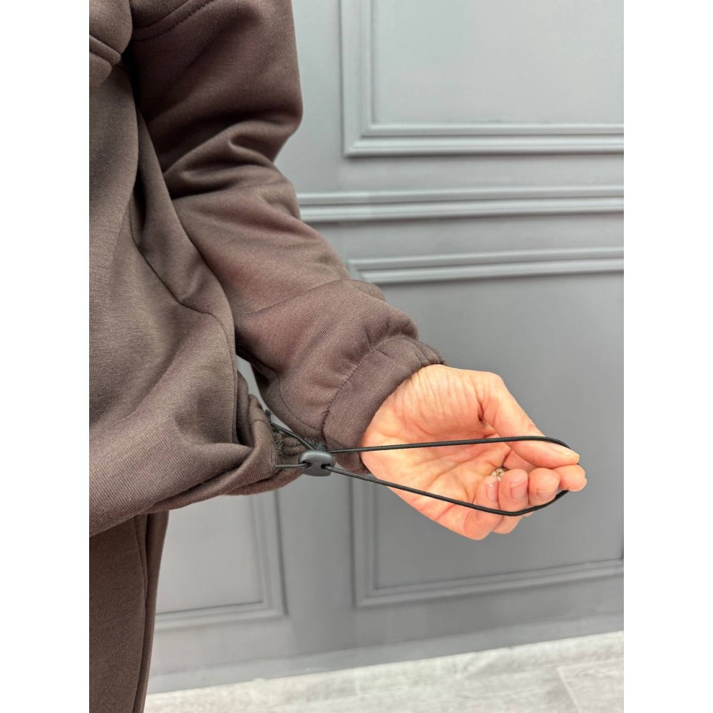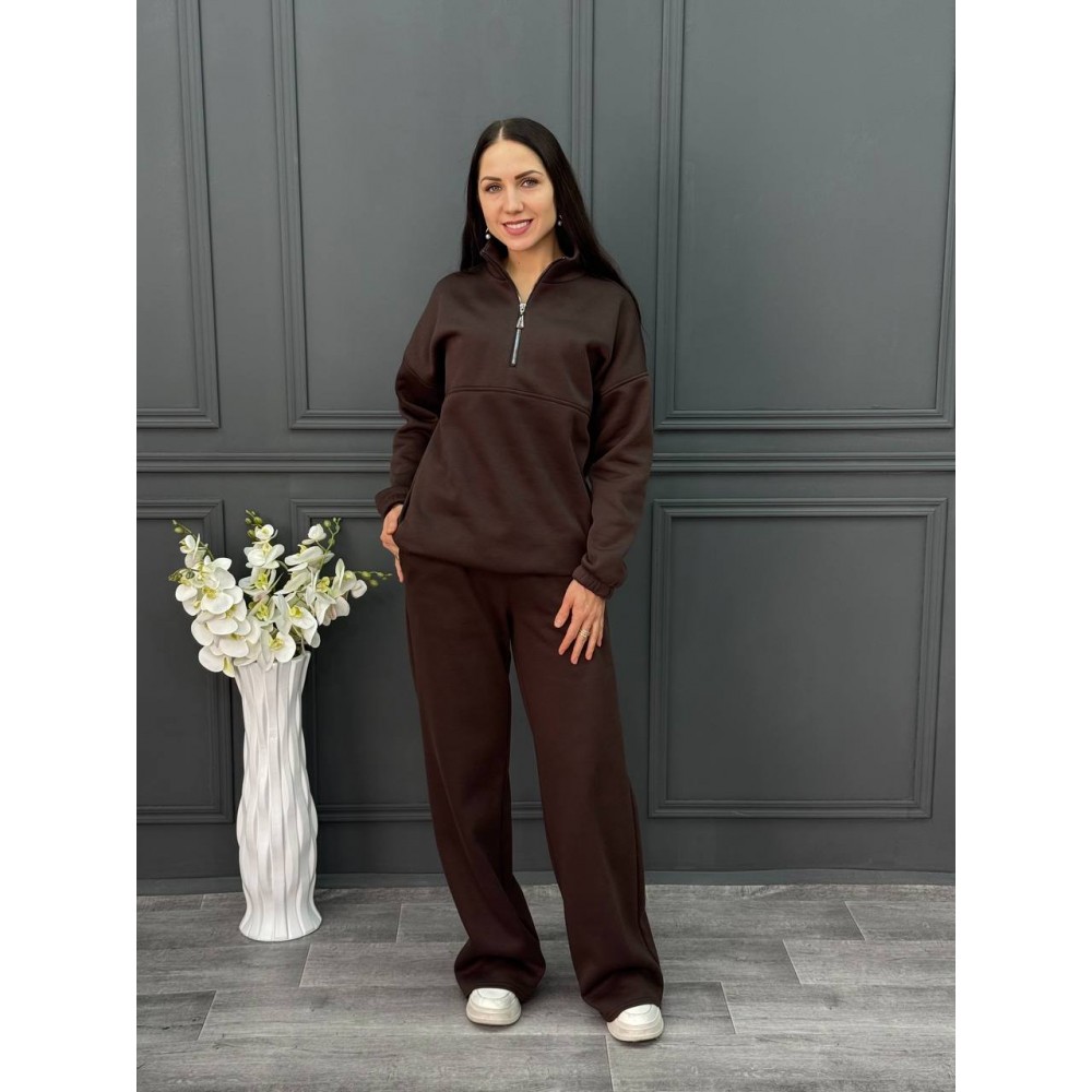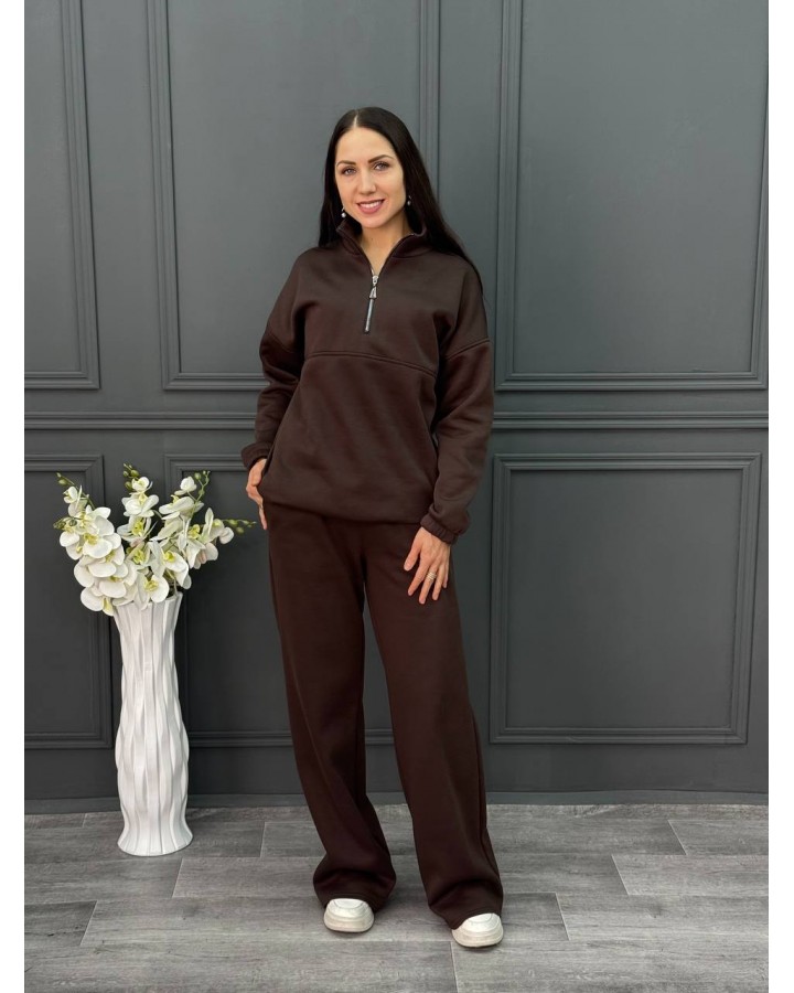 Оформить заказКостюм из футера с начесом. Брюки палаццо на резинке. Свитшот на молнии, низ на шляпной резинке