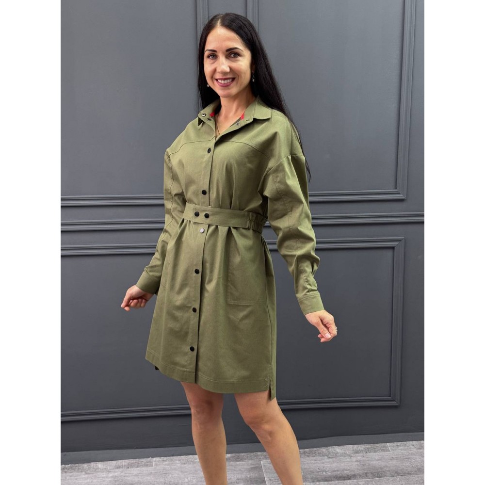 Оформить заказПлатье-рубашка из джинсы в цвете хаки. Оверсайз силуэт, удлиненная спинка. Можно носить как верхний слой. Пояс в комплекте