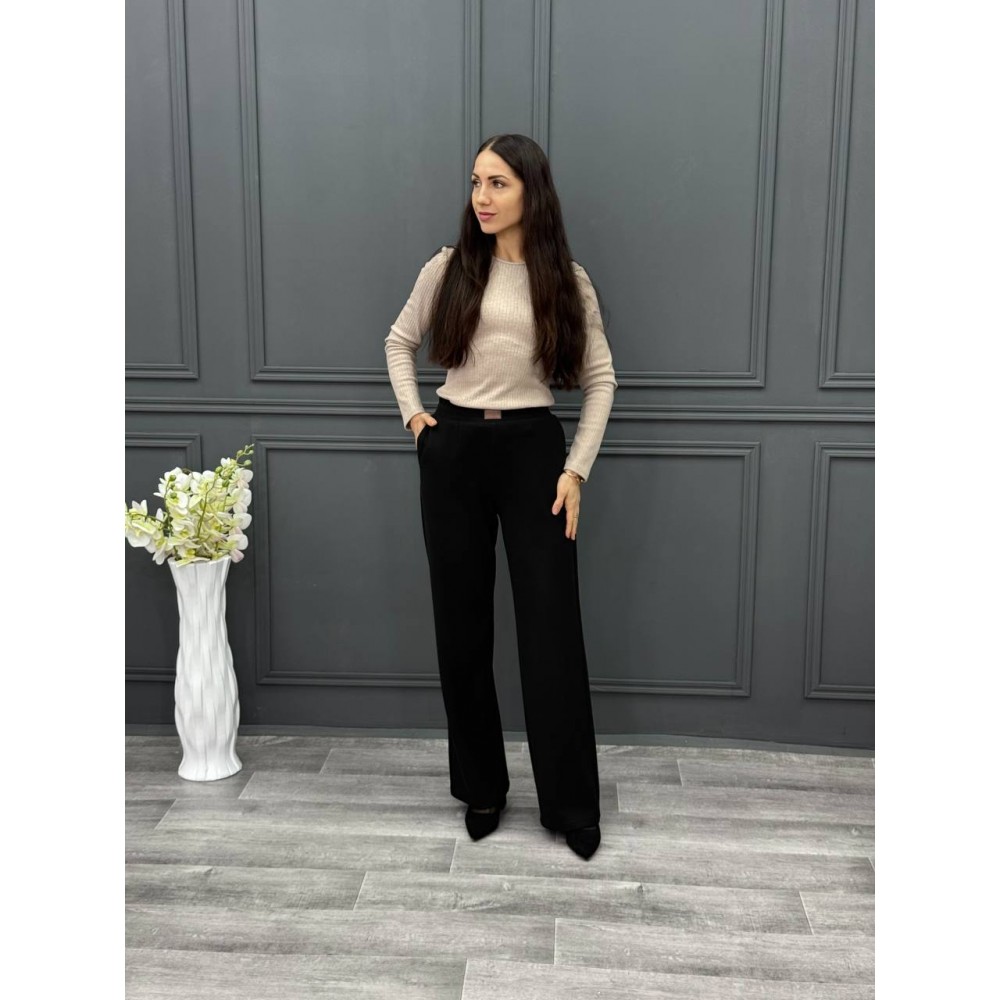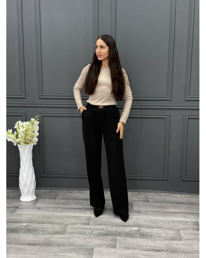Брюки в черном цвете из вязанного трикотажа. Пояс на резинке