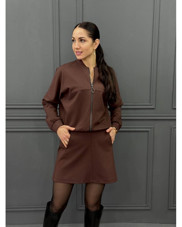 Костюм из материала Джерси. Бомбер и юбка в шоколадном цвете