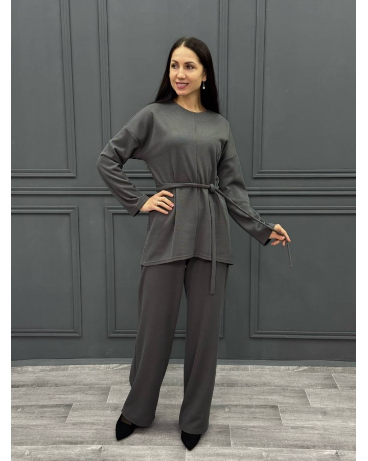 Костюм из вязанного трикотажа. Лонг свободного силуэта, пояс в комплекте, и брюки палаццо на резинке