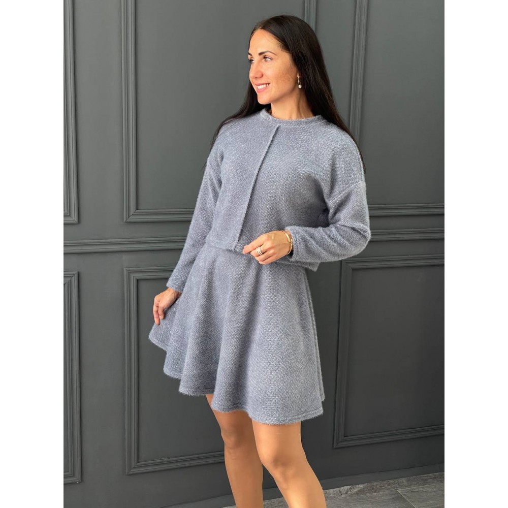Костюм из трикотажа пушистик в цвете графит. Юбка полусолнце с резинкой на спинке и потайной молнии, укороченный свитшот. Деликатная стирка