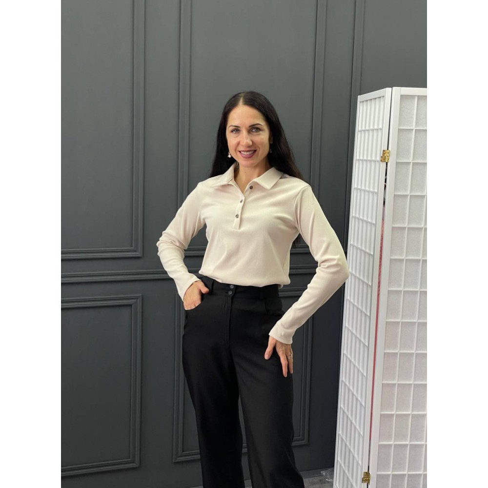Лонг поло из нежного вязанного трикотажа в рубчик. Тактильно очень приятный.