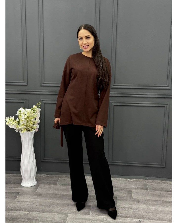 Лонг из вязанного трикотажа свободного силуэта, пояс в комплекте