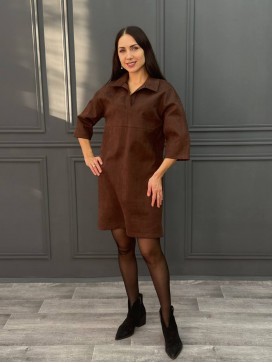 Платье из замшевого трикотажа в длине мини с молнией, горловина стойка..