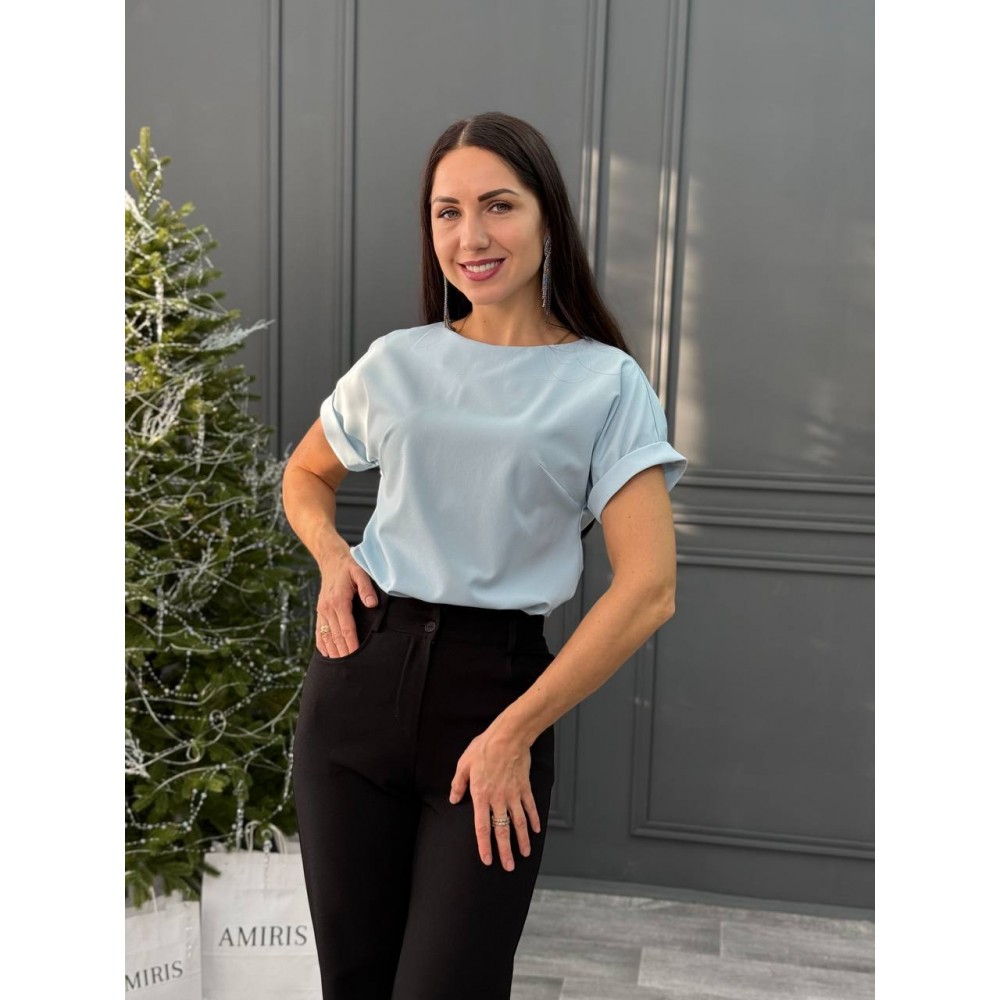 Оформить заказБазовая блузка со спущенным плечом в небесно-голубом цвете