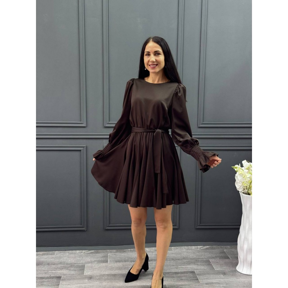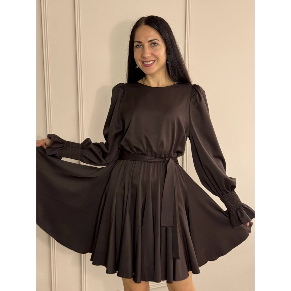 Это платье никого не оставит равнодушным. Глубокий шоколадный цвет. Клинья на юбке создают вау эффект. Объемный рукав со сборкой на резинке на кисти.