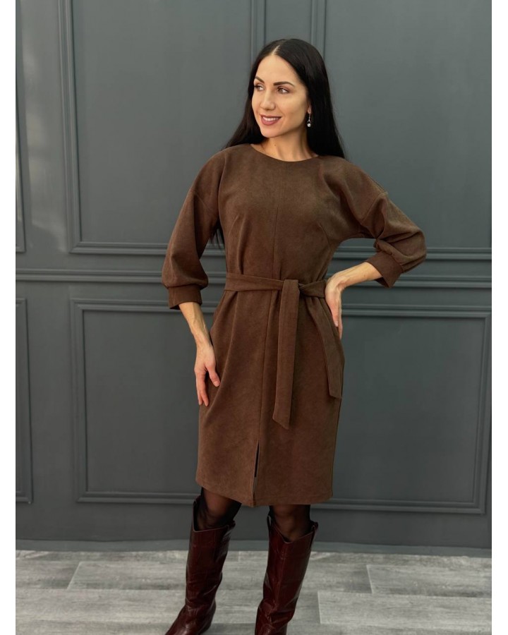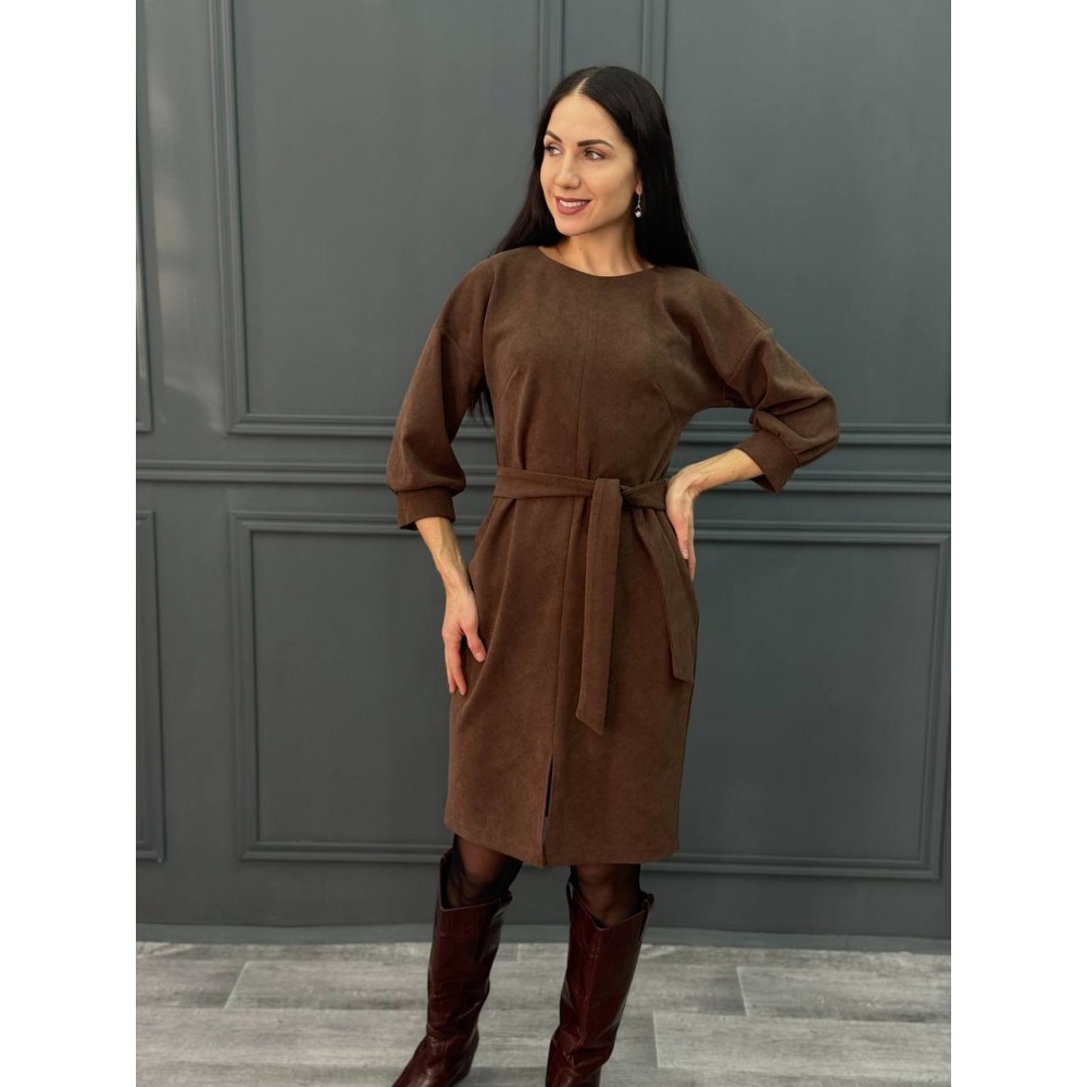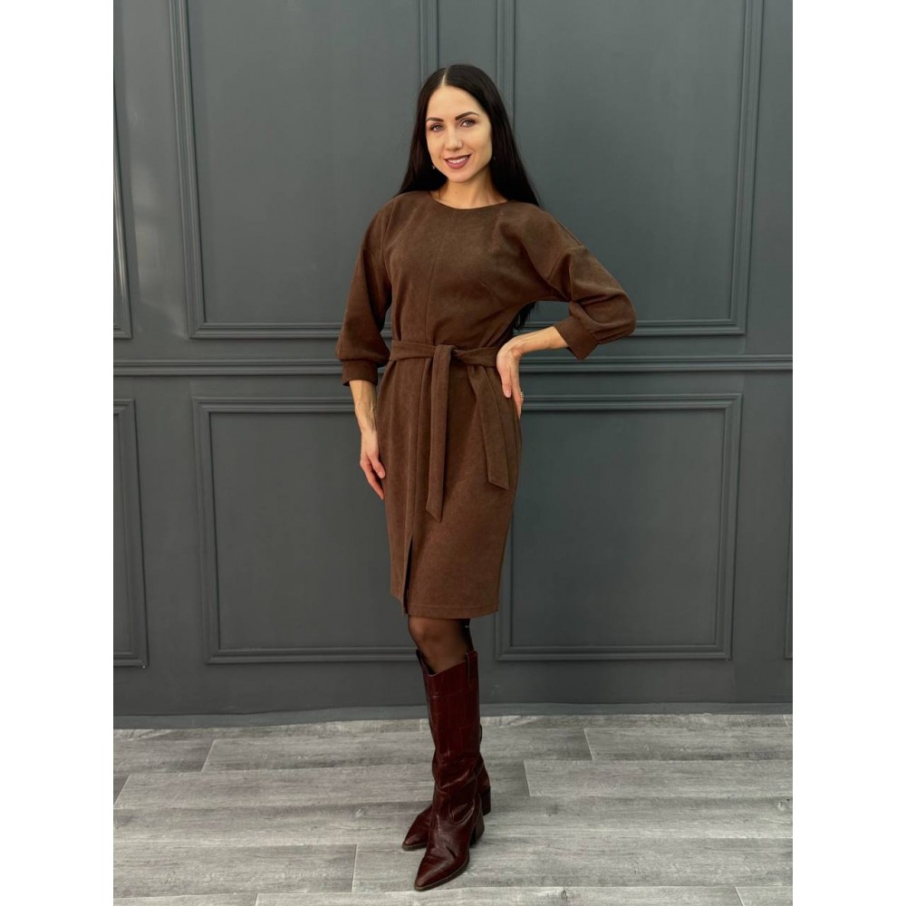 Оформить заказТрикотажное платье со спущенным плечом. В шоколадном цвете