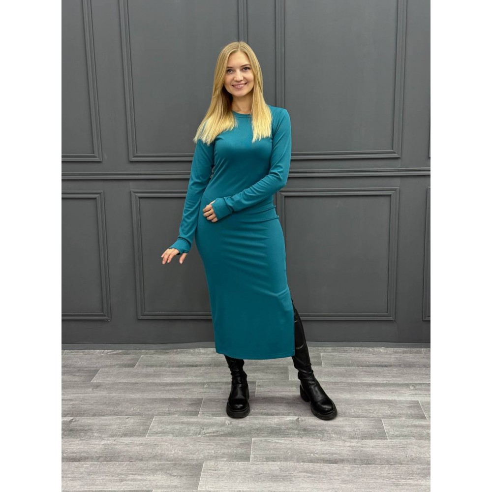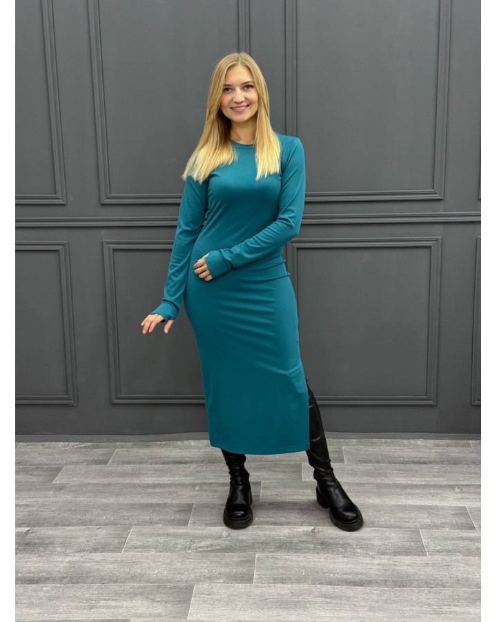 Оформить заказОблегающее платье из трикотажа в рубчик с разрезом