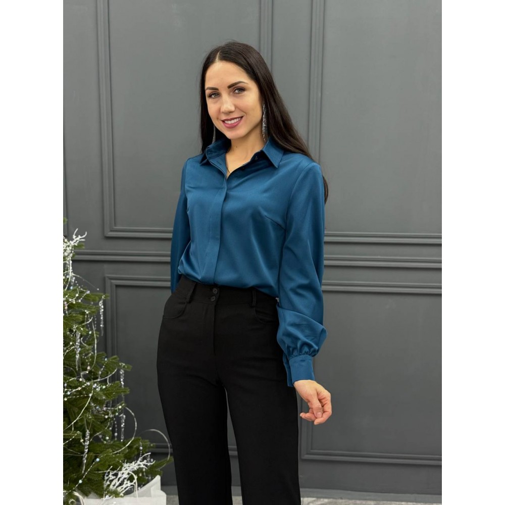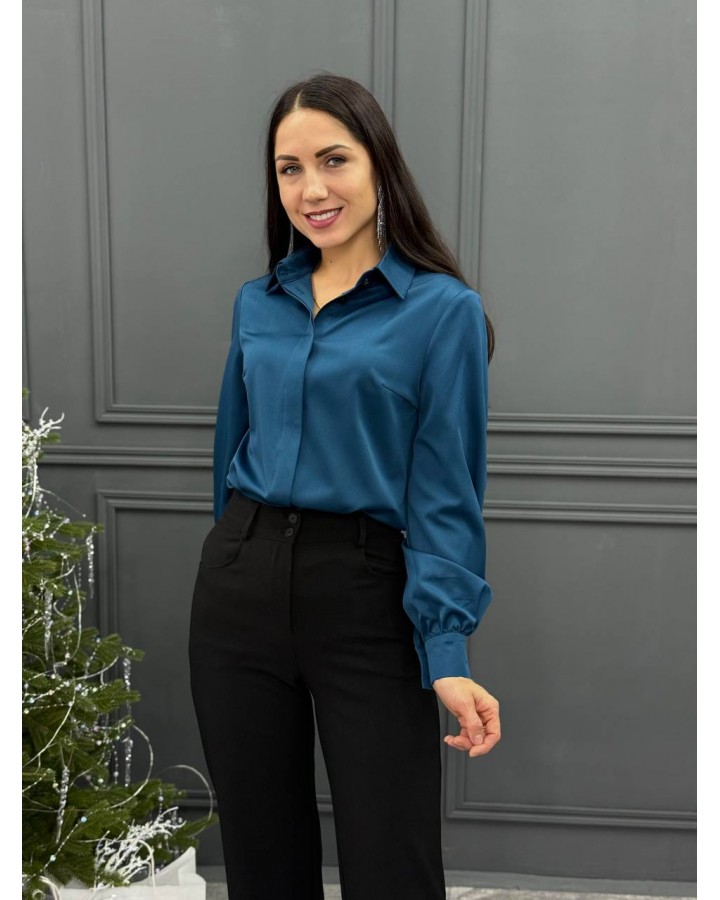 Оформить заказБлузка с потайной планкой в цвете морская волна