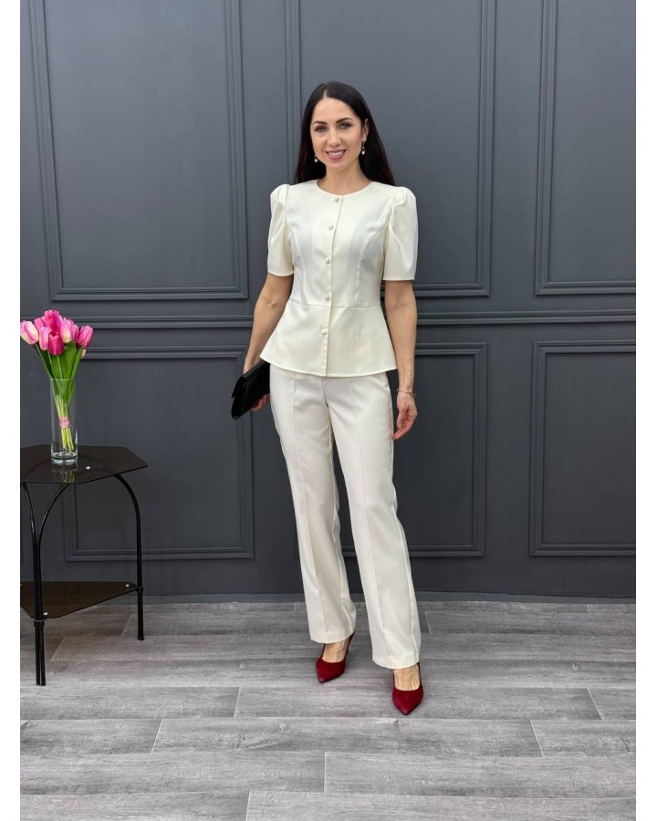 Блузка-баска в нежном сливочном оттенке. Рукав фонарик. Баска, которая подчеркивает талию