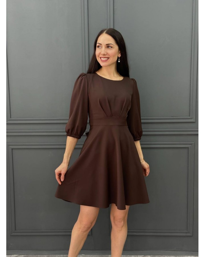 Платье со втачным поясом шоколад
