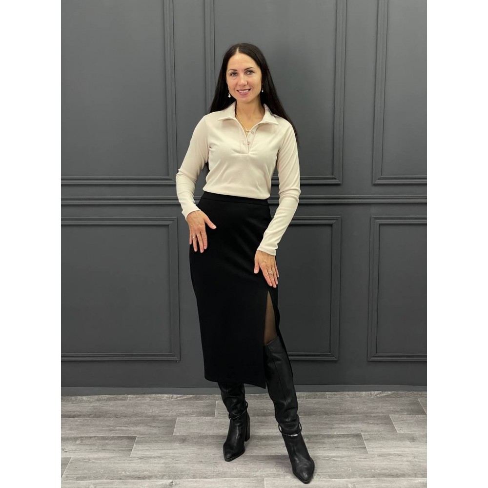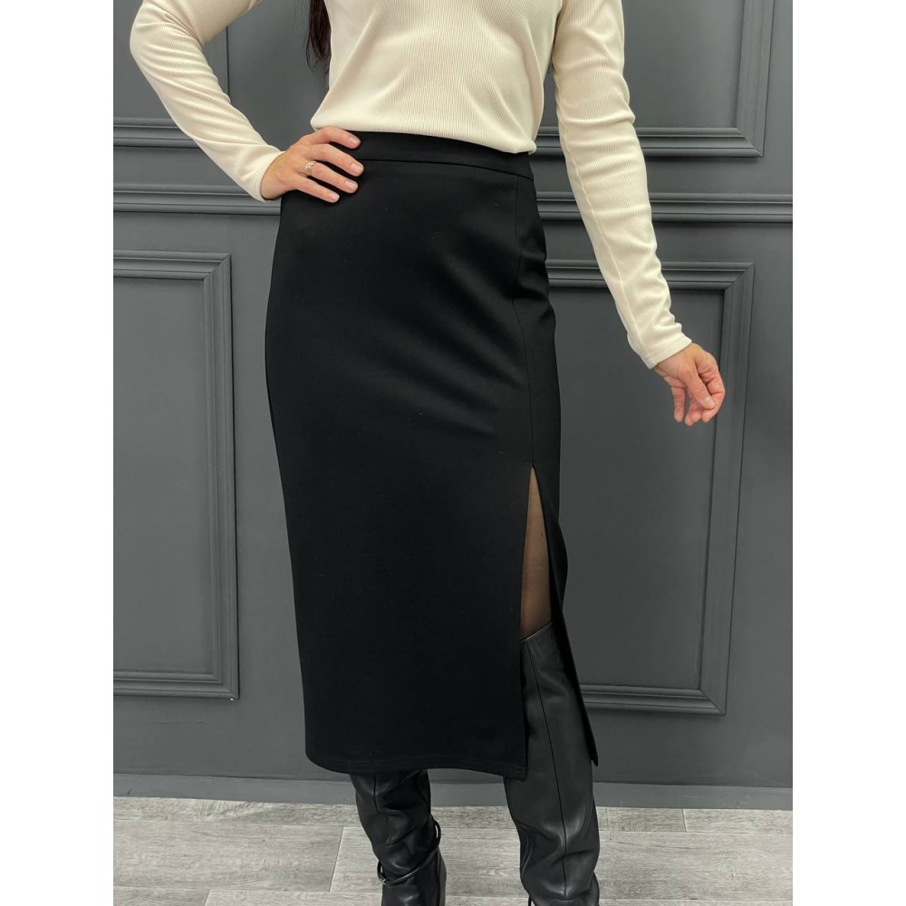 Юбка миди из бандажного трикотажа. С разрезом спереди, на потайной молнии, без резинки на талии