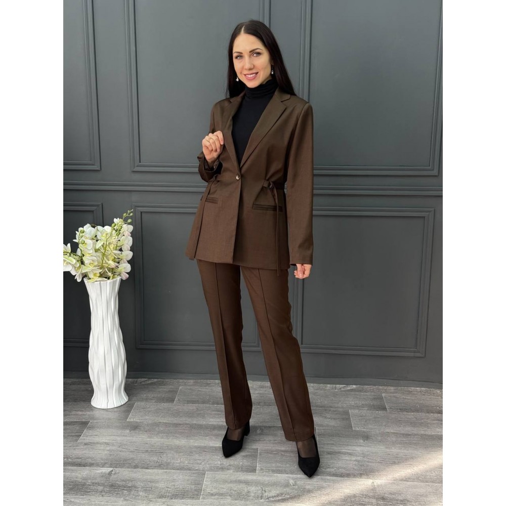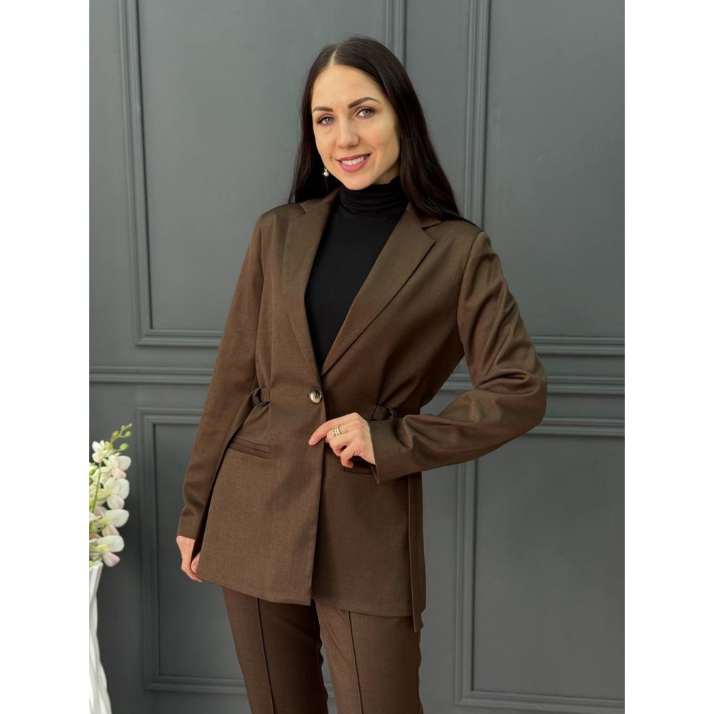 Оформить заказЖакет-трансформер в коричневом цвете. Благодаря вшитому поясу вы можете приталить жакет, либо сделать его прямым